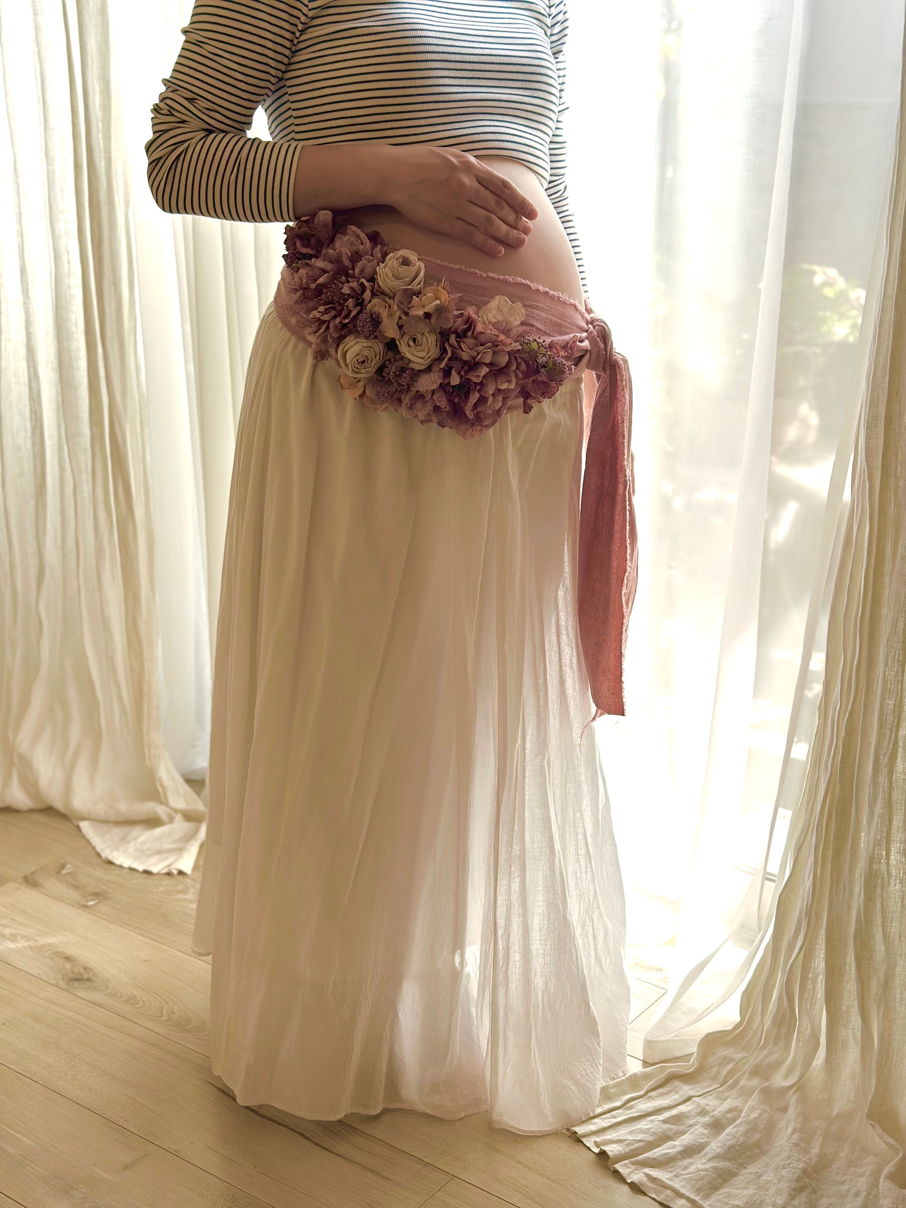 妊婦さんのお腹に巻くフラワーベルト、マタニティサッシュベルト。